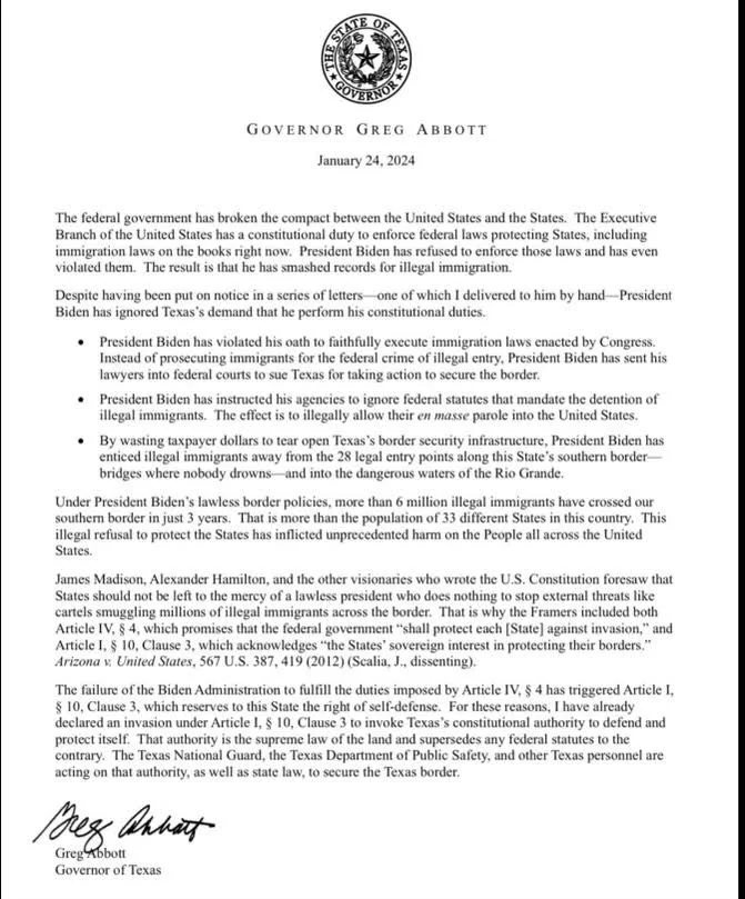 In fact Greg Abbott is doubling down on his efforts to protect his state and the rest of the country from the flood of fentanyl, drug cartels, gang members, terrorists and human trafficking that is pouring into the U.S., courtesy of the feckless Biden administration, which has led the country into a constitutional crisis.