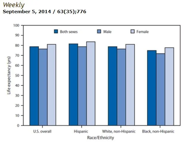 Like the drunk looking for his keys under the street lamp because that’s where the light is, academic social-justice warriors can use statistics to find what they want to find. It is interesting that, in the quote above, Rao lumps Hispanics together with Blacks as victims of health disparities. Here are numbers from the Centers for Disease Control: