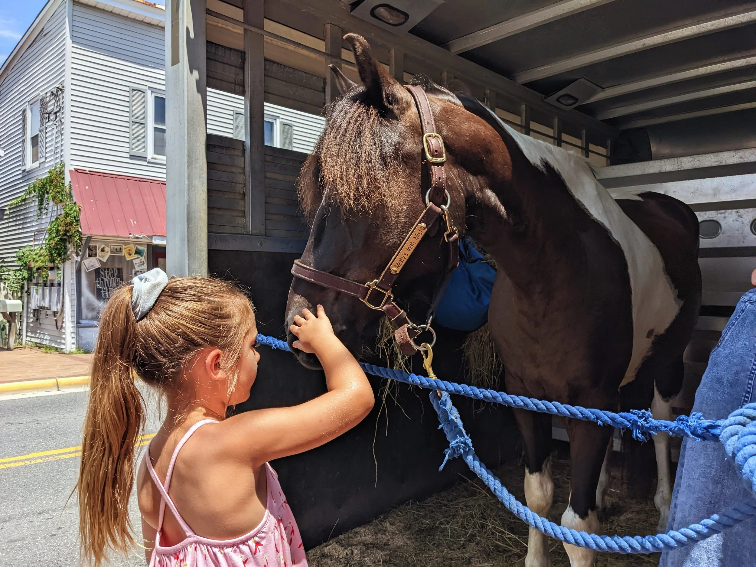 Greeting one of the ponies on Main Street. That’s Misty’s Irish Mist, a great-great-great-grandson of the legendary Misty of Chincoteague. I THINK that’s the correct number of greats!