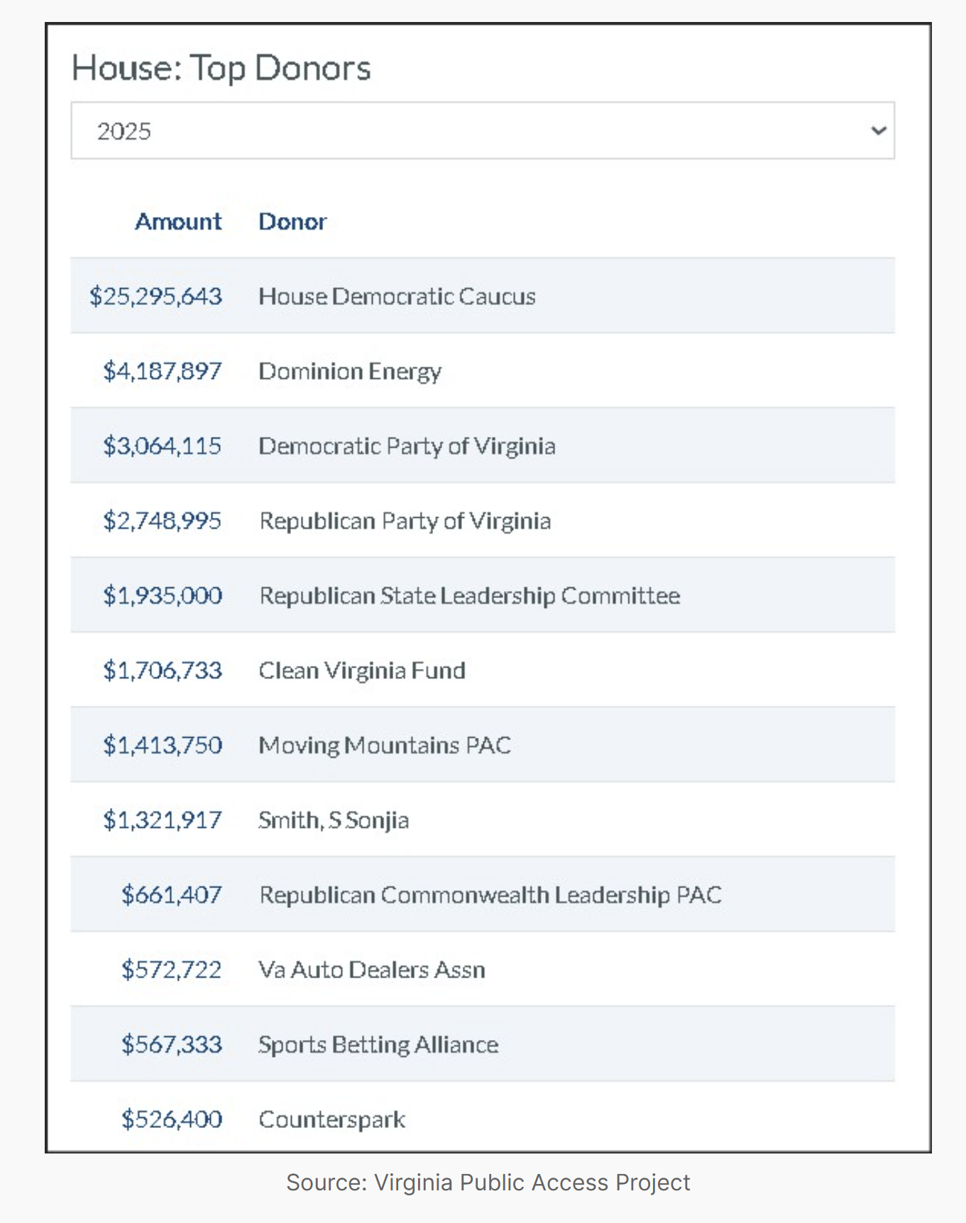 According to VPAP data, Democrats’ fundraising advantage was just as lopsided in the House of Delegates races.