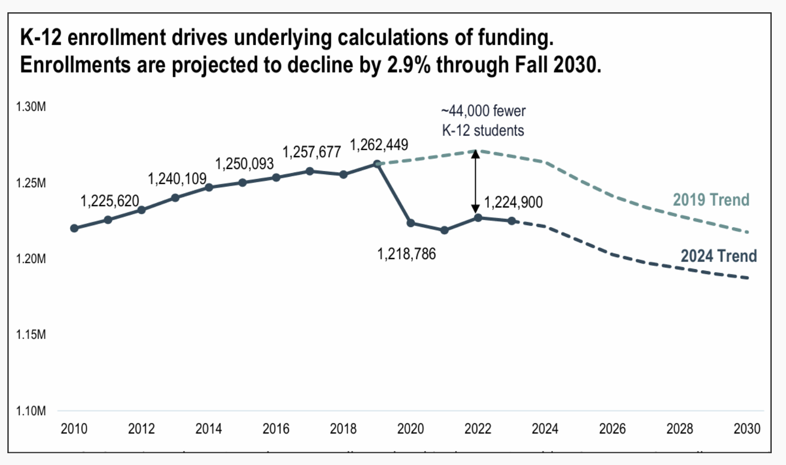 Fewer Students, Lower Scores, More Taxpayer Dollars
