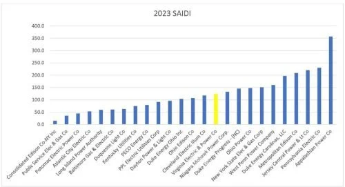 Joshipura’s testimony also covered the company’s record of electricity outages during the period which he stated has been showing improvement. There are two common measures. SAIDI tracks the duration of outages and SAIFI the frequency. For 2023, Dominion’s average annual outage for customers was 123 minutes per year and they lost power an average of 1.165 times per year. Individual customer experience will vary widely. Whether those are means or medians isn’t noted that I saw. One of the tables is at the top of this report and the other below.